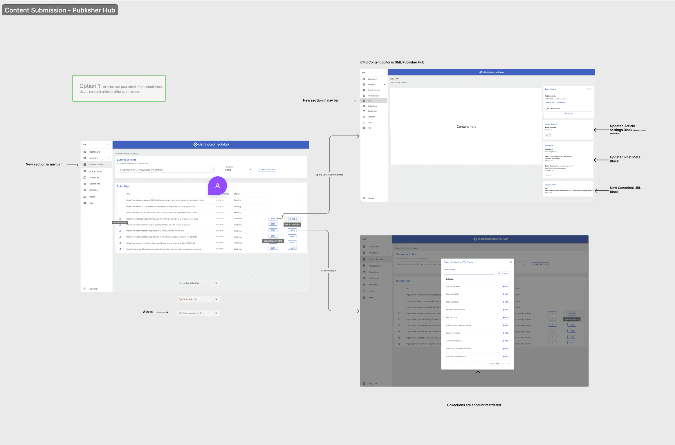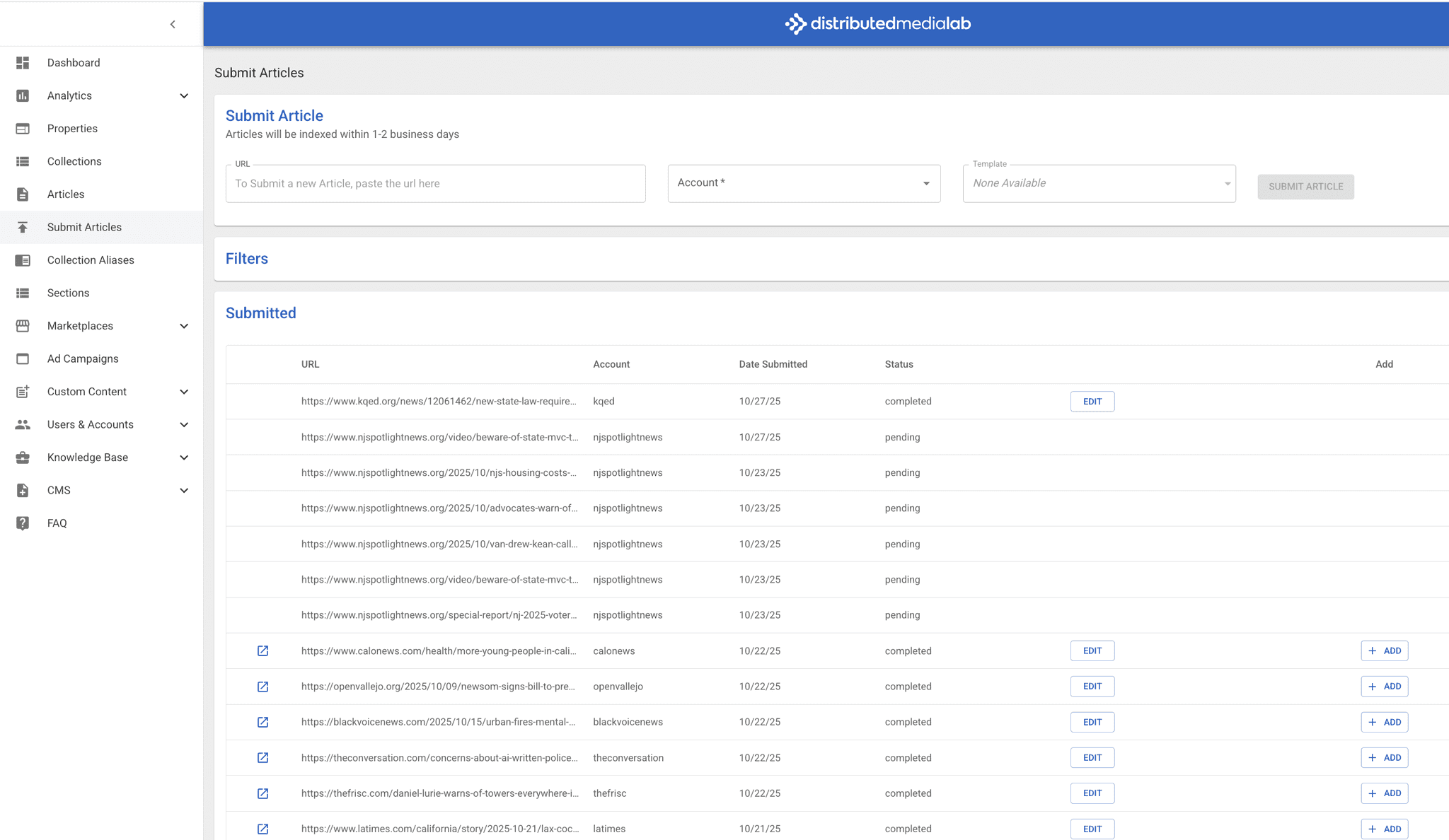 The tool used emails to submit articles rather that submitting directly on DML's internal platform.